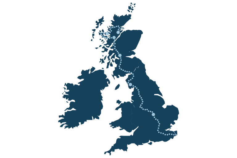 • 6 étapes à travers le Royaume-Uni jusqu'au cœur de l'Écosse.